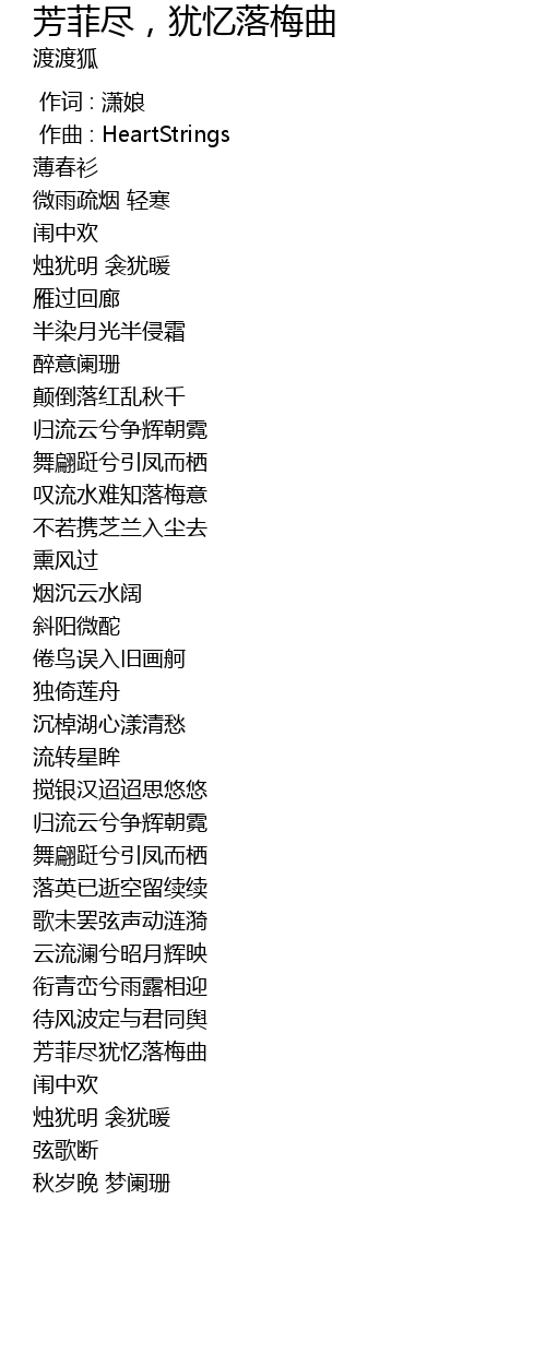 | [04:26.943] | 芳菲尽犹忆落梅曲 |
