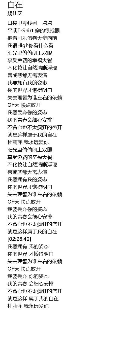 | [02:16.02] | 就是这样属于我的自在 |