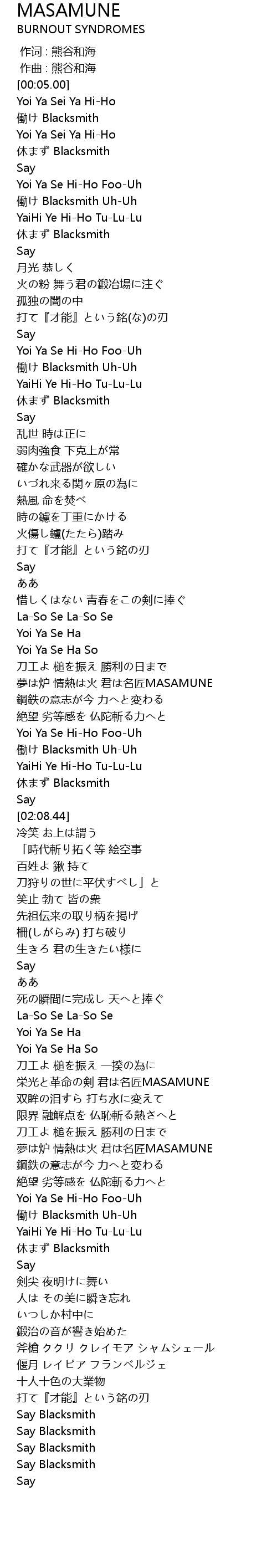 | [02:00.86] | 働け Blacksmith Uh-Uh |