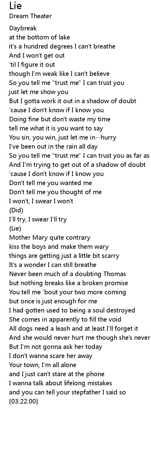 So you tell me "trust me" I can trust you as far as I can throw you |
