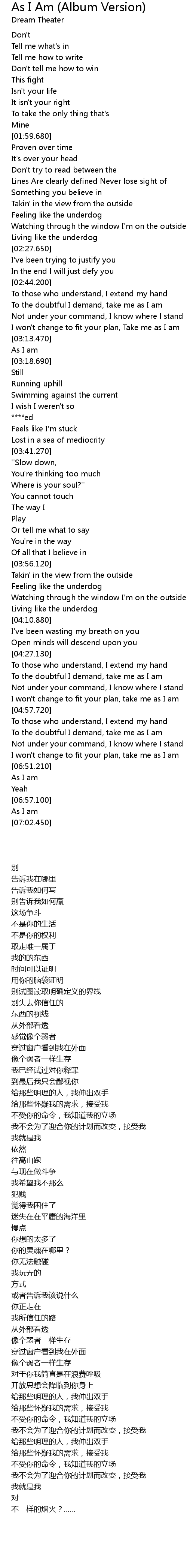 | [06:43.300] | I won' t change to fit your plan, take me as I am |