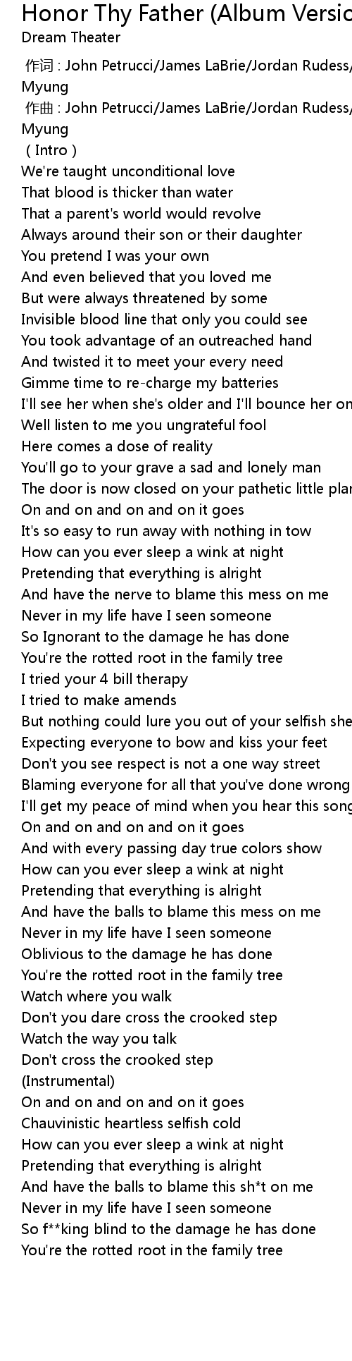 | Song | Honor Thy Father (Album Version) |
