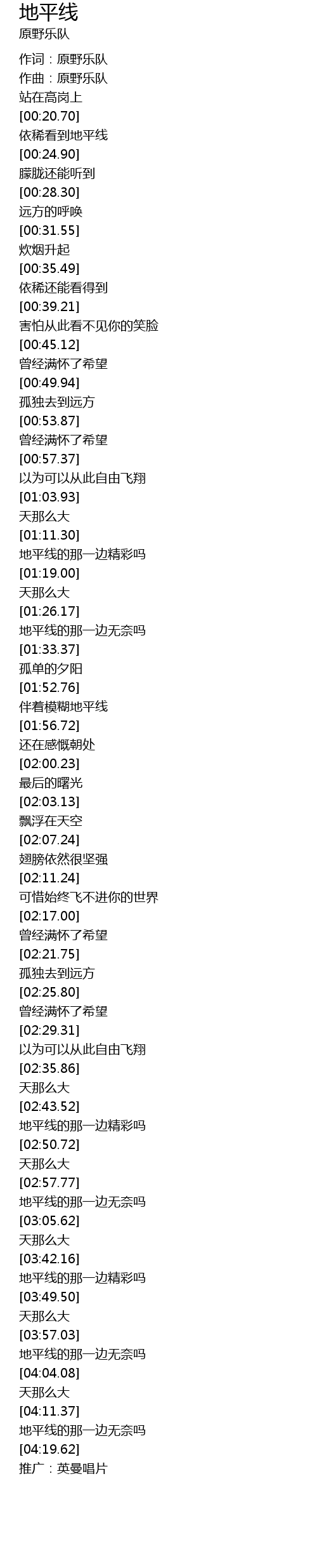 | [00:04.26] | 作词:原野乐队 |