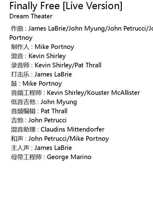 | [00:00.000] | zuò qǔ : James LaBrie John Myung John Petrucci Jordan Rudess Mike Portnoy |