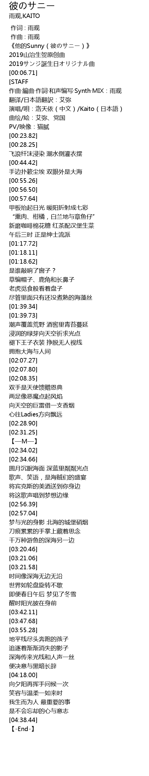 | [00:01.86] | 《他的Sunny(彼のサニー)》 |