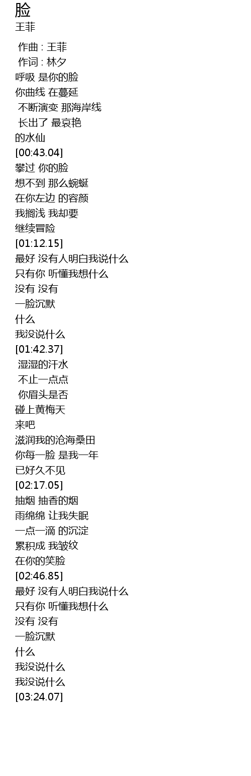 | [03:15.62] | wǒ méi shuō shí mǒ |