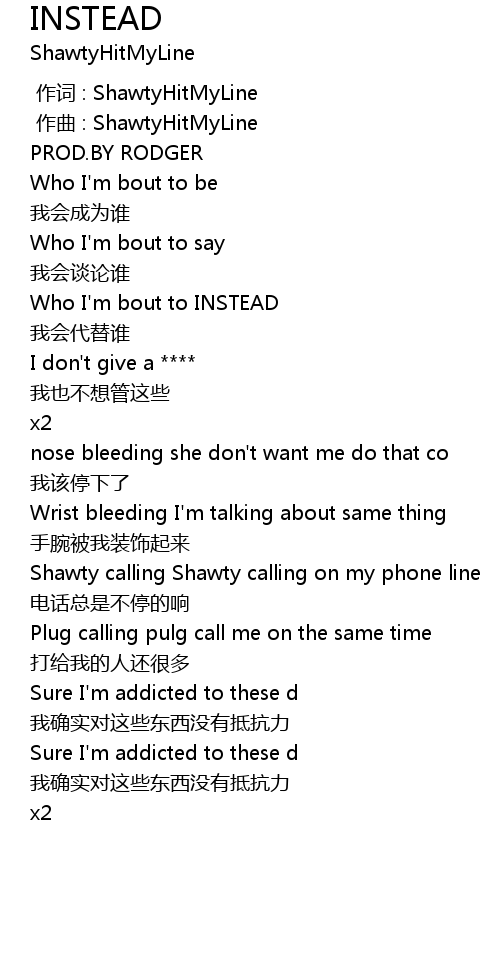 | [00:16.401] | Who I' m bout to INSTEAD |