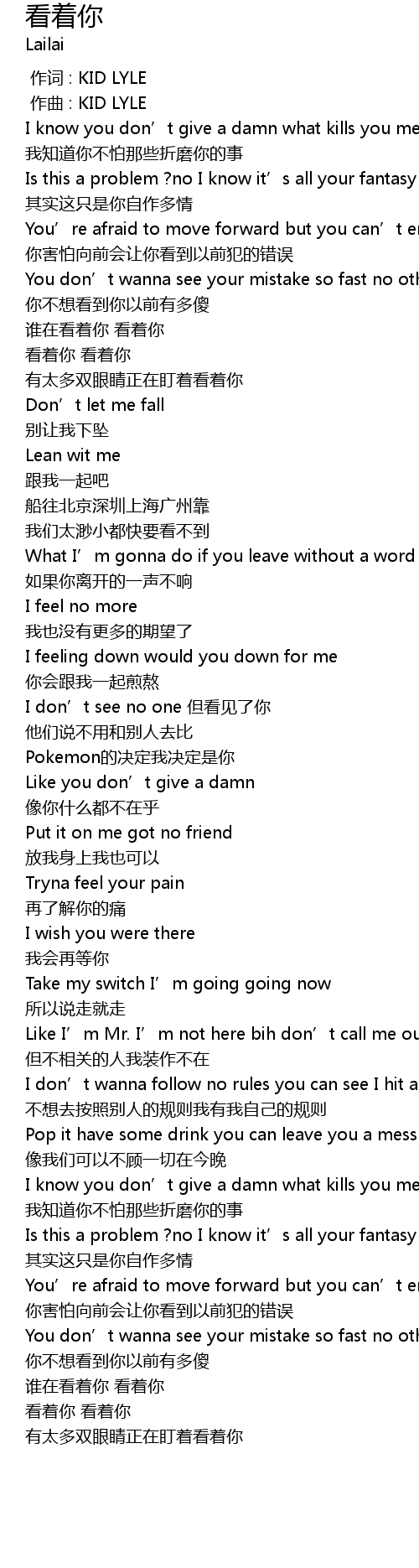 | [01:41.565] | kàn zhe nǐ kàn zhe nǐ |