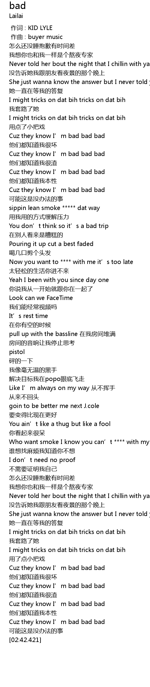| [00:43.778] | Cuz they know I’m bad bad bad |