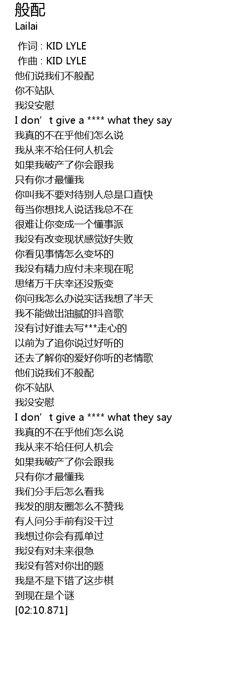 | [00:01.000] | zuò qǔ : KID LYLE |