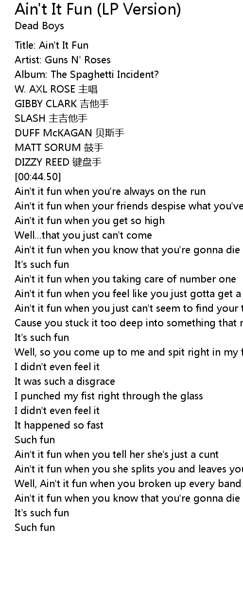 | [03:40.82] | Ain't it fun when you she splits you and leaves you on the run |