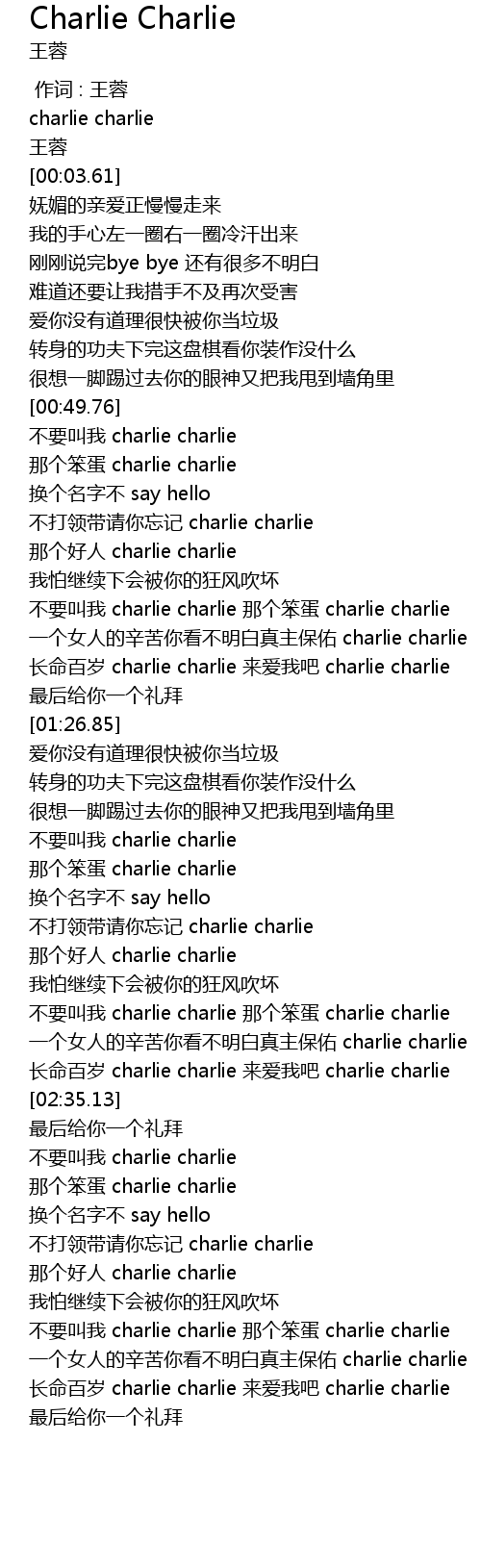 | [02:39.09] | 不要叫我 charlie charlie |