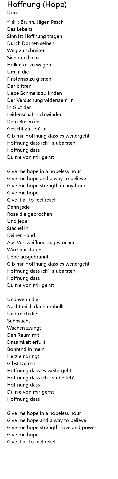 | Hoffnung dass ich' s uberleb' Chorus | |