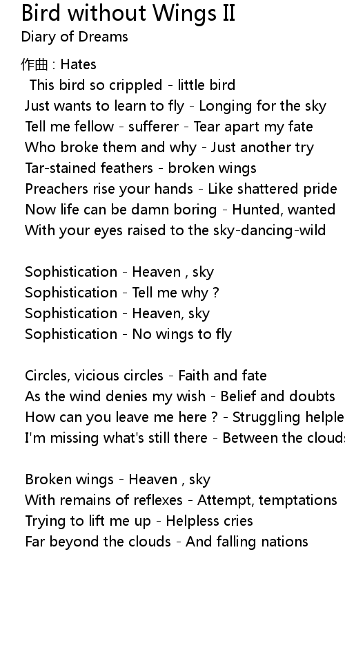| Song | Bird without Wings II |