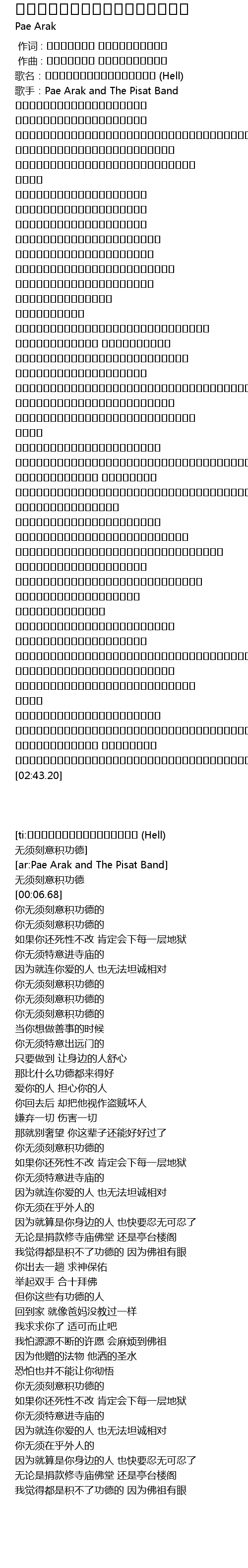 [00:06.68] 歌手:Pae Arak and The Pisat Band