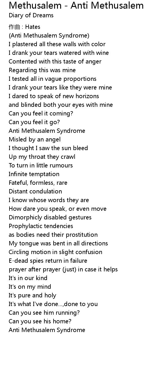 | Song | Methusalem - Anti Methusalem Syndrome - p version |