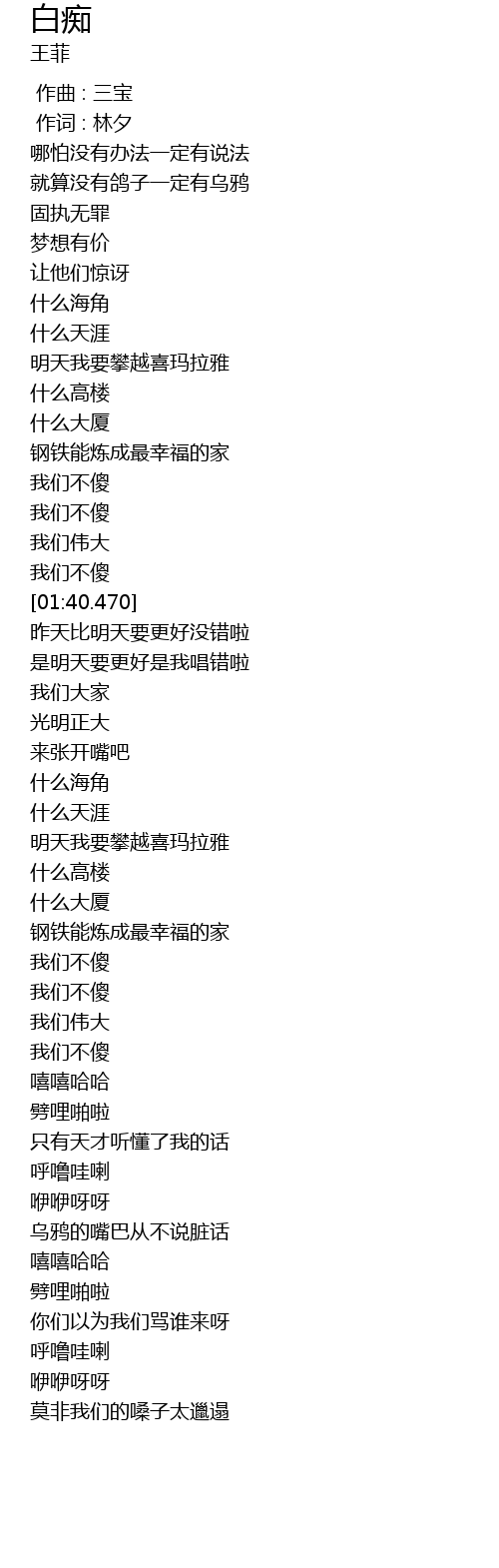 | [01:01.240] | míng tiān wǒ yào pān yuè xǐ mǎ lā yǎ |