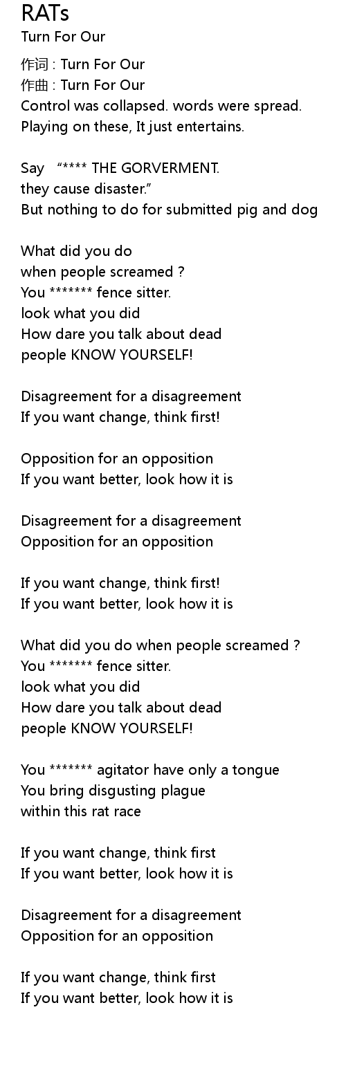 | 作词 : Turn For Our | |
