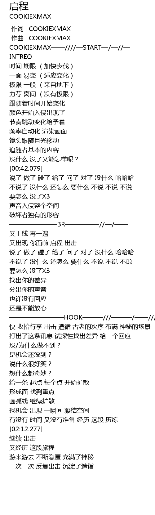 | [00:01.000] | zuò qǔ : COOKIEXMAX |
