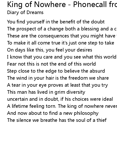 King of Nowhere - Phonecall from Nowhere Mix Lyrics