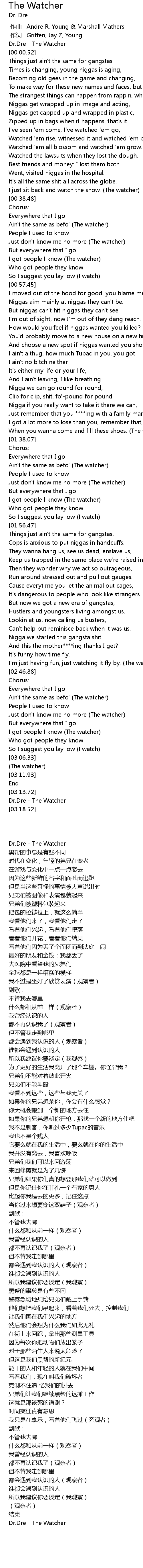| [00:00.02] | Dr.Dre - The Watcher |