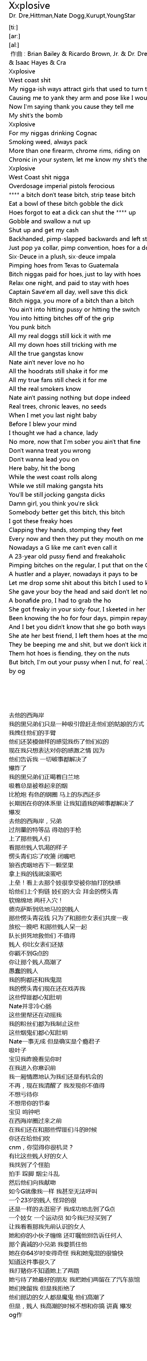 | [03:20.94] | But bitch, I' m out your pussy when I nut, fo' real, Xxplosive |
