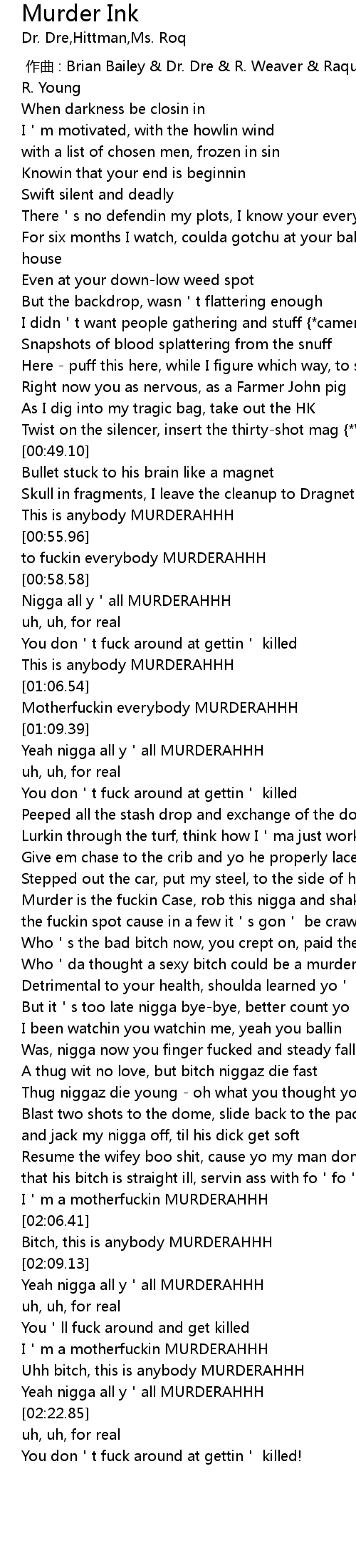 | [01:07.61] | Motherfuckin everybody MURDERAHHH |