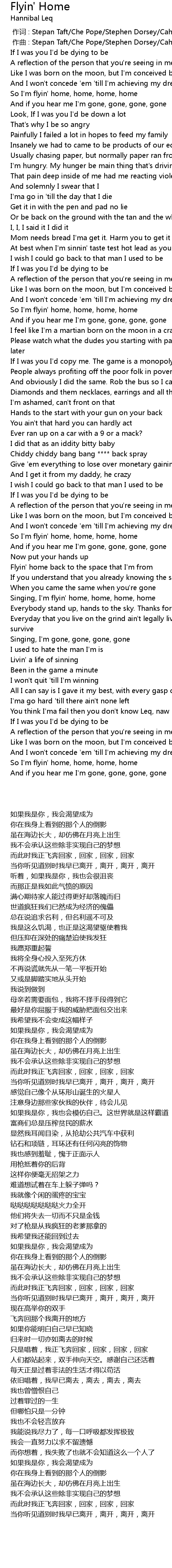 | [00:22.07] | So I' m flyin' home, home, home, home |