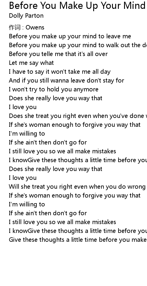| I knowGive these thoughts a little time before you make up your mind[ guitar ] | |