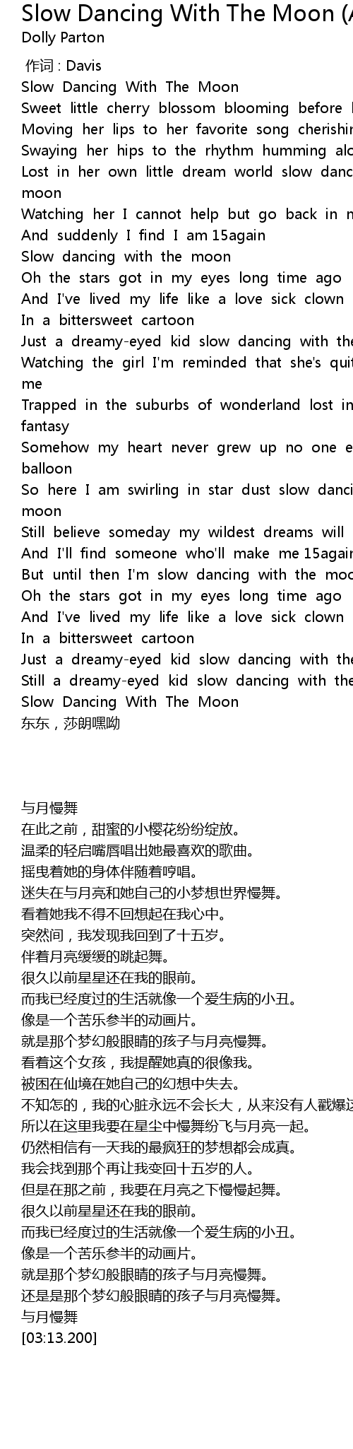 | [02:29.350] | But until then I'm slow dancing with the moon |