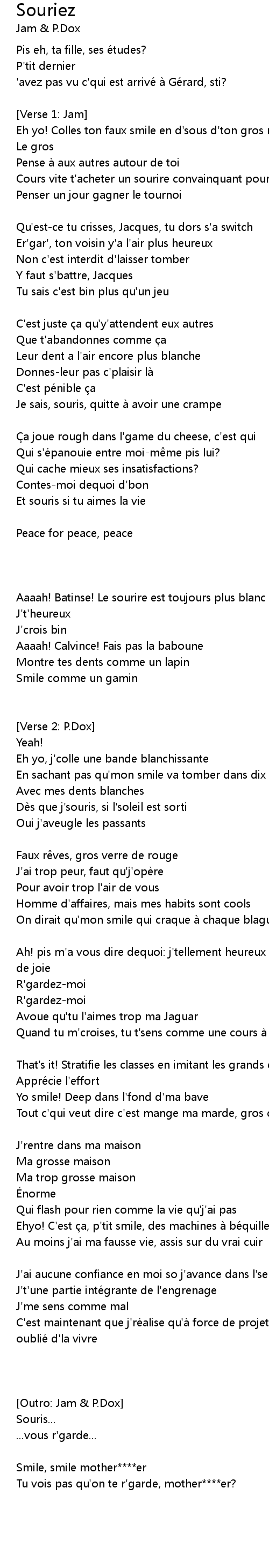| Yo smile! Deep dans l' fond d' ma bave | |