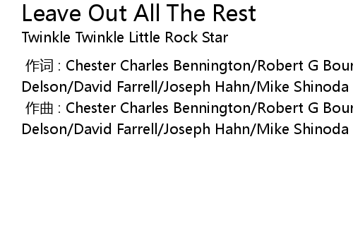| [00:00.000] | 作词 : Chester Charles Bennington/Robert G Bourdon/Brad Delson/David Farrell/Joseph Hahn/Mike Shinoda |