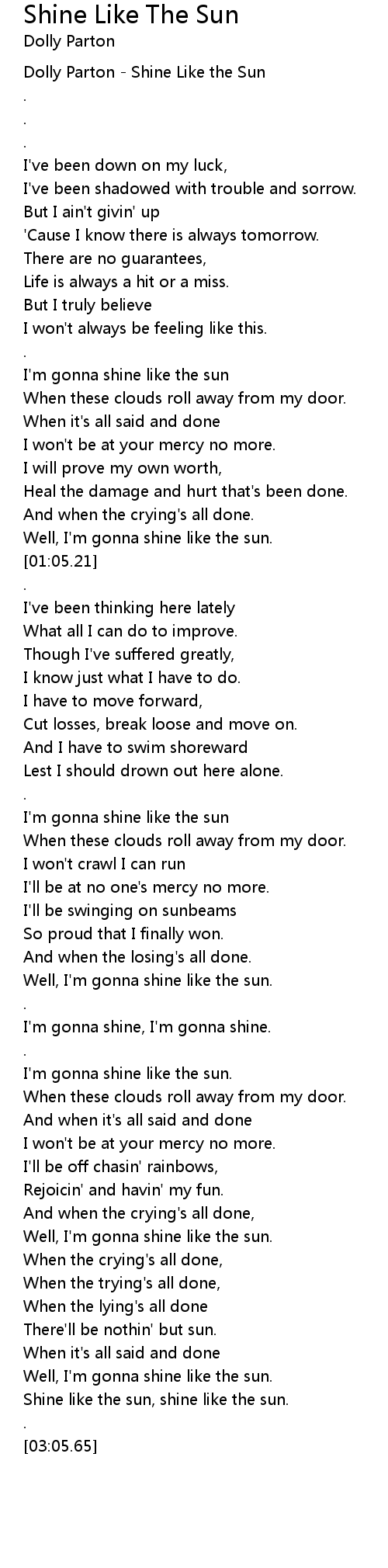[00:00.26] Dolly Parton - Shine Like the Sun