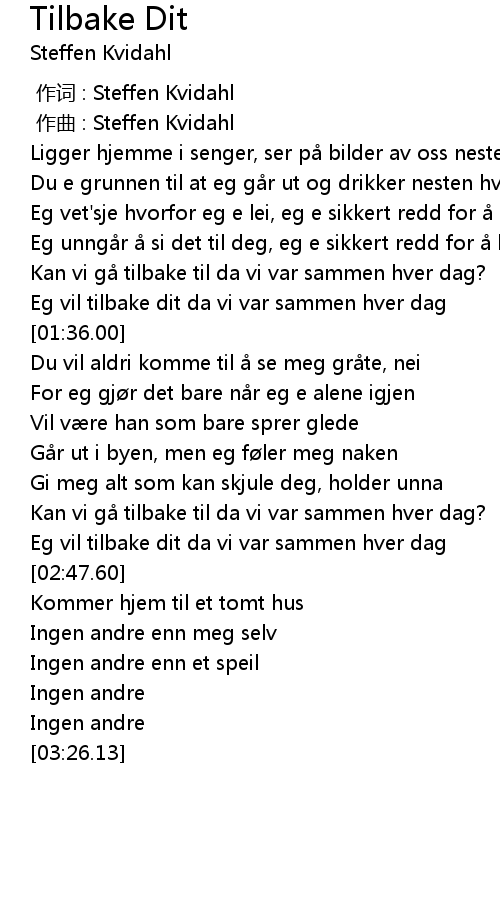 | [02:23.66] | Kan vi gå tilbake til da vi var sammen hver dag? |