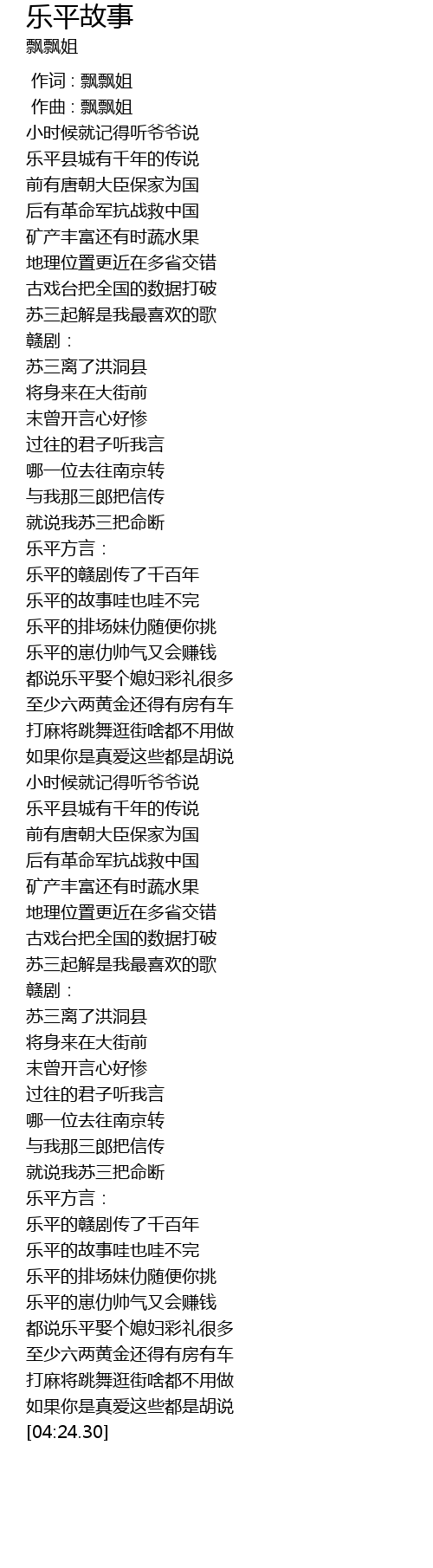 | [03:56.77] | 乐平的排场妹仂随便你挑 |