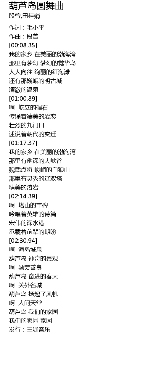 | [02:58.56] | 葫芦岛 我们的家园 |