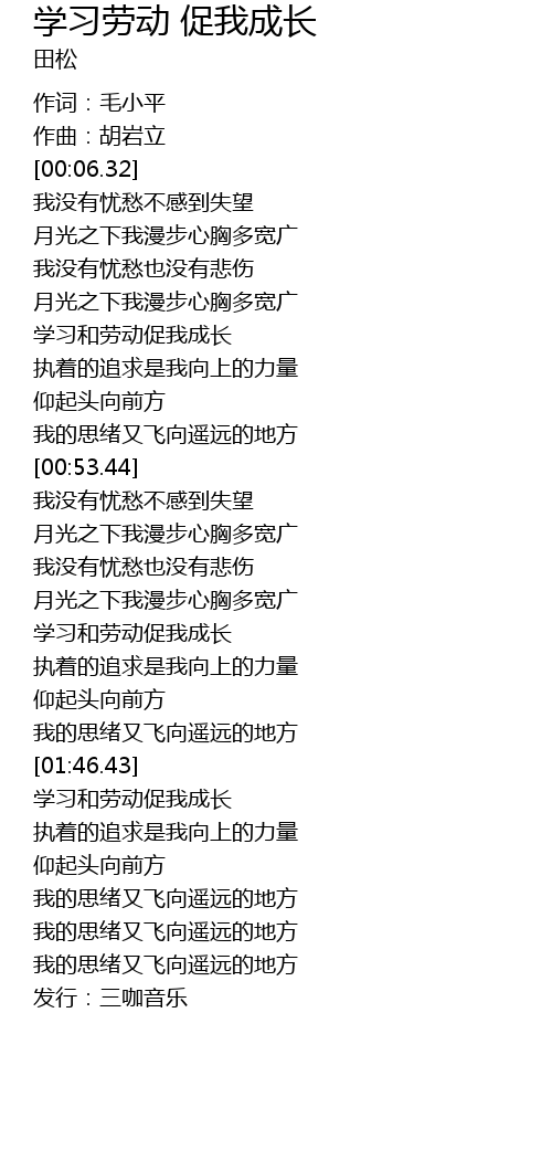 | [00:31.50] | xué xí hé láo dòng cù wǒ chéng zhǎng |