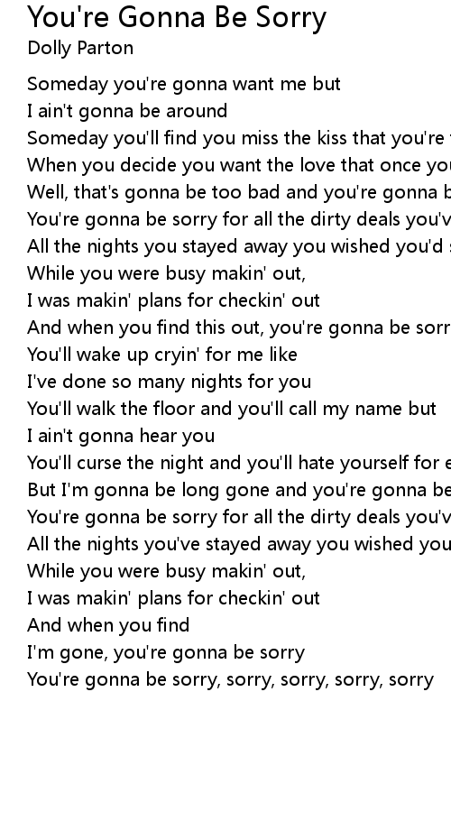 You're gonna be sorry, sorry, sorry, sorry, sorry |