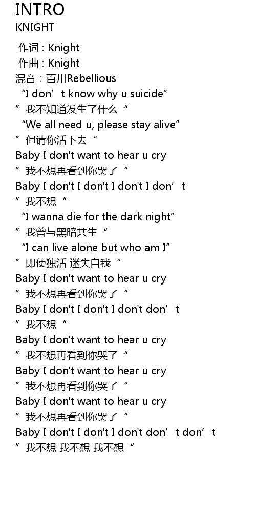 | [00:51.686] | Baby I don' t want to hear u cry |