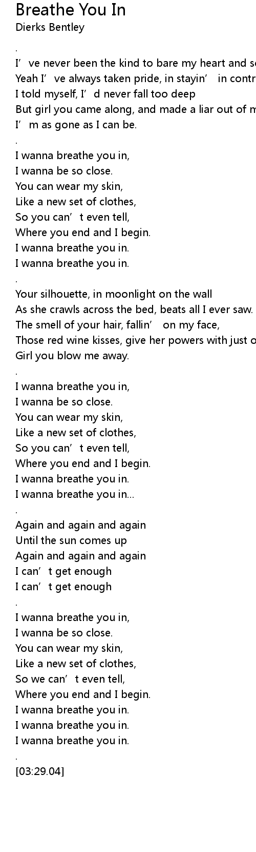 | [01:29.15] | The smell of your hair, fallin' on my face, |