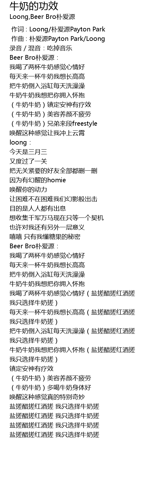 | [01:12.958] | 每天来一杯牛奶我想长高高(盐搓醋搓红酒搓 我只选择牛奶搓) |