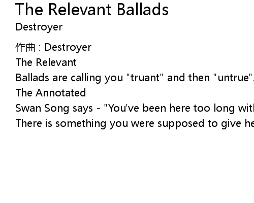 | Song | The Relevant Ballads |