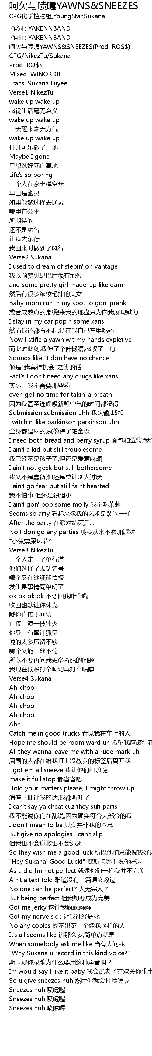 | [00:03.664] | 呵欠与喷嚏YAWNS&SNEEZES(Prod. RO$$) |