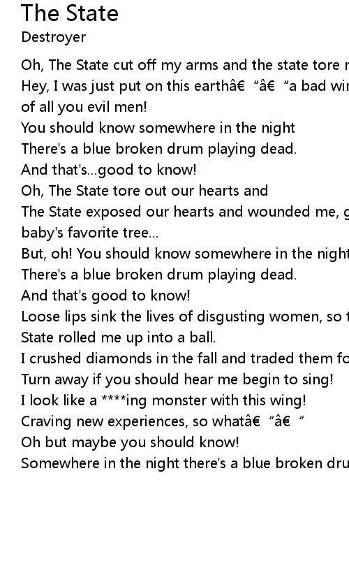 | Oh, The State cut off my arms and the state tore my eyes with her nails. | |