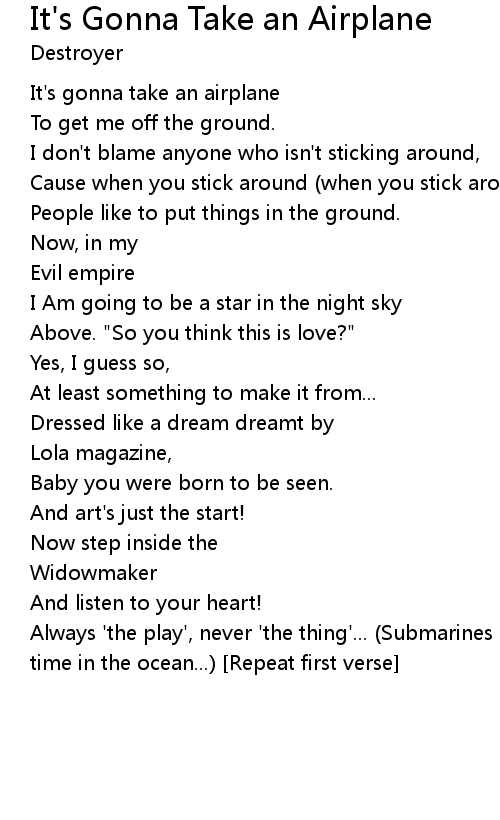 Always 'the play', never 'the thing'... (Submarines don't mind spending their time in the ocean...) [Repeat first verse] |