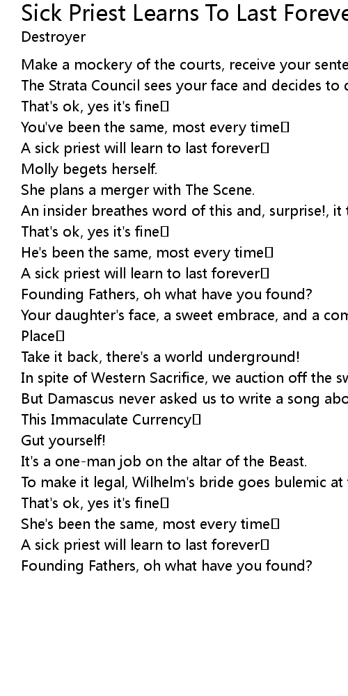 | But Damascus never asked us to write a song about being bored with Our Lady Of This Immaculate Currency | |