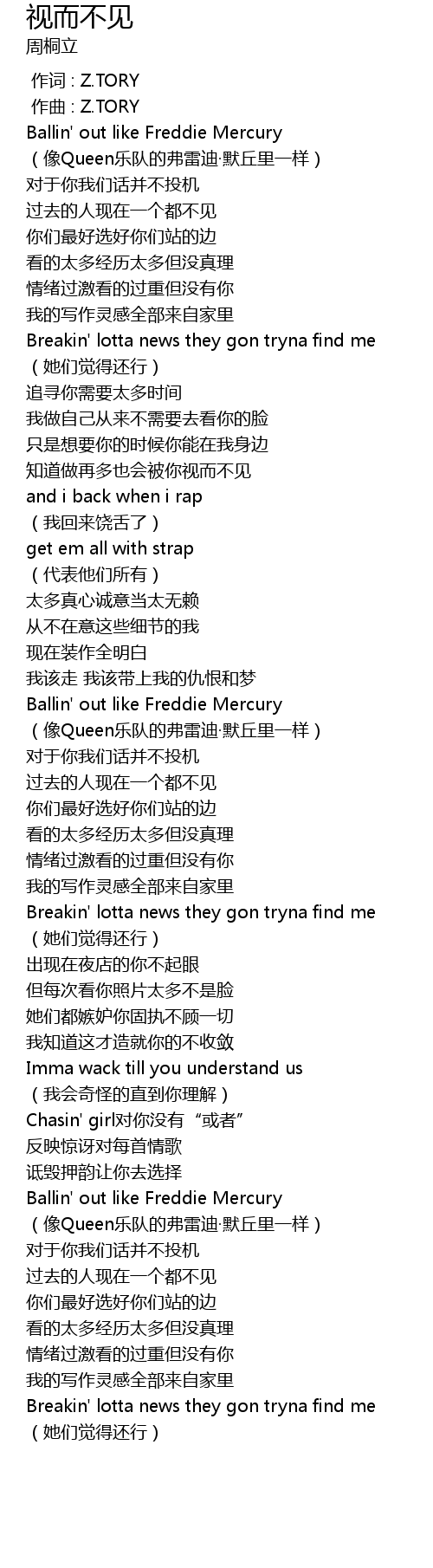 | [00:00.000] | 作词 : Z.TORY |