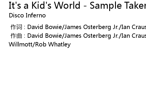 | Song | It's a Kid's World - Sample Taken By Iggy Pop, "Lust for Life" |