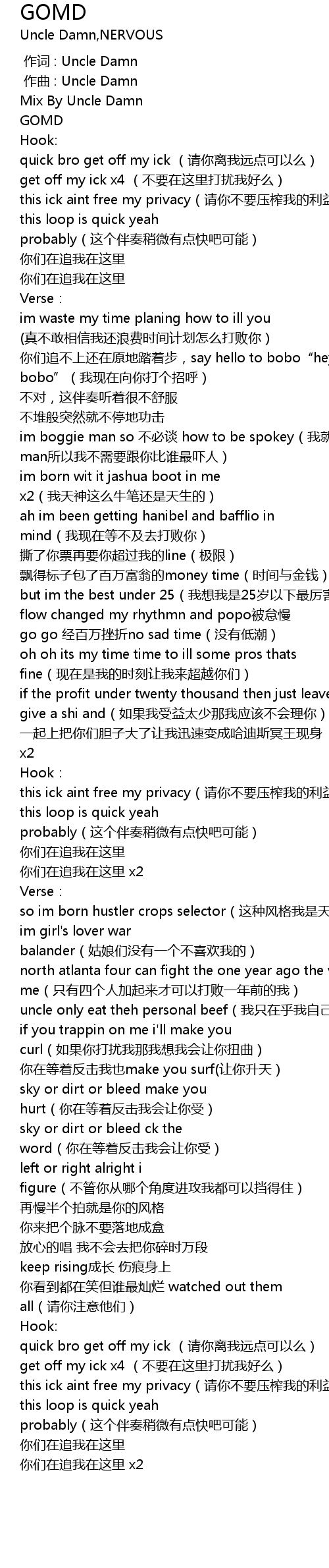 | [00:00.000] | 作词 : Uncle Damn |
