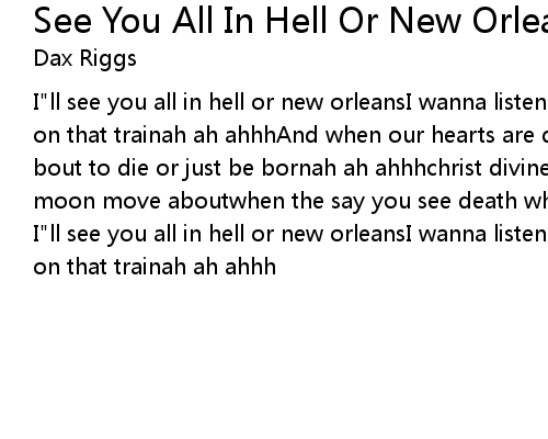| I"ll see you all in hell or new orleansI wanna listen to the rainbe a stranger on that trainah ah ahhh |